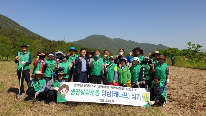 산청군새마을회(회장 이천세)가 11일 금서면 특리 일원에 생명살림운동의 하나로 케나프 심기를 추진했다.