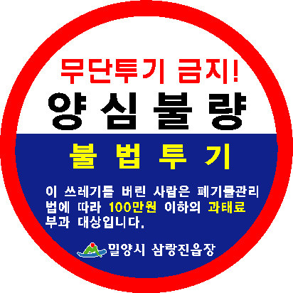 김외호 삼랑진읍장은 “지속적으로 단속 및 홍보해 아름다운 삼랑진 만들기에 최선을 다하겠다“며 “‘나부터’라는 생각으로 올바르게 쓰레기를 배출하는 습관을 들일 수 있도록 지속적으로 홍보 하겠다“라고 전했다.