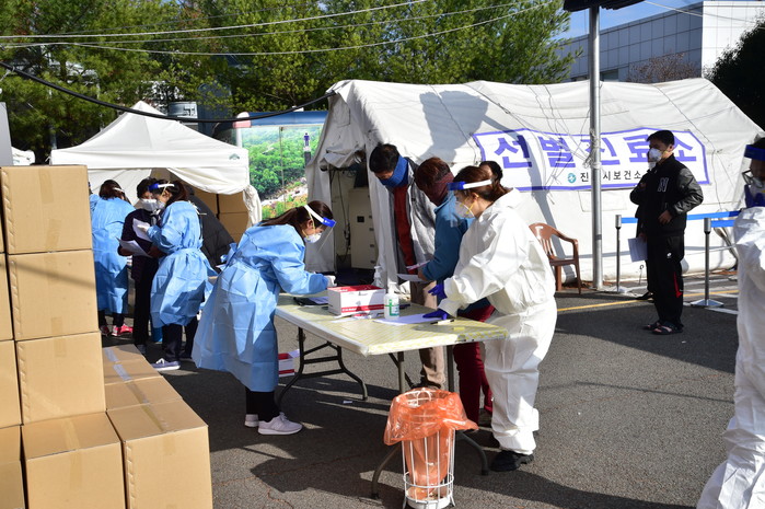 진주시가 전 시민 대상으로 코로나19 선제적 무료 진단검사를 실시하여 지난 12월 19일 이후 13명의 무증상 확진자를 찾아내는 등 감염 확산 차단에 총력을 기울이고 있다.