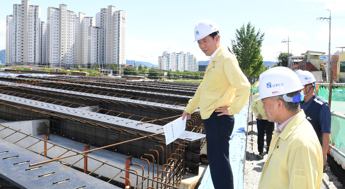 이날 점검에 나선 구 군수는 현장에서 사업 추진상황 등을 확인했으며, 현장 내 집중호우와 태풍으로 인한 피해가 발생하지 않도록 공사장 내 침수 및 토사유출 등이 우려되는 구간에 대해 우기 전 안전대책을 마련하도록 유도했다.