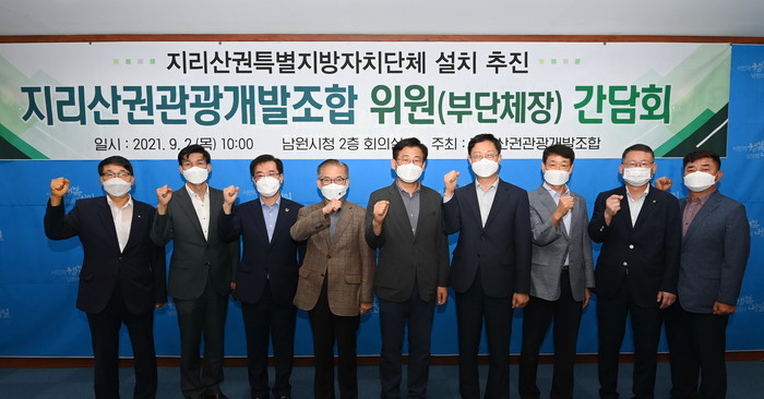 지리산권관광개발조합(이하 조합)은 2일 오전 남원시청에서 지리산권 특별지방자치단체 설치 추진을 위한 지리산권관광개발조합회의(이하 조합회의) 위원 간담회를 개최했다.