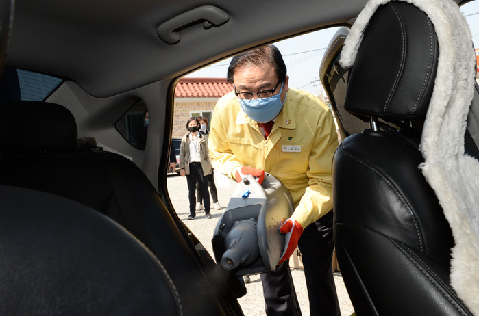 창녕군자원봉사센터는 방호복, 보호 장구와 마스크를 착용한 무선112봉사단원, 자원봉사자들과 택시 실내외, 타이어, 트렁크 등을 기계로 소독했으며 승객들의 손이 자주 닿는 손잡이는 한 번 더 구석구석 닦았다.