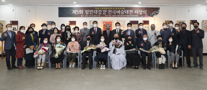팔만대장경전국예술대전운영위원회(위원장 이수희)에서 주관한 이날 시상식은 코로나19 확산방지 및 예방을 위해 최소인원만 참석한 가운데 수상작품 전시회를 겸하여 진행됐다.