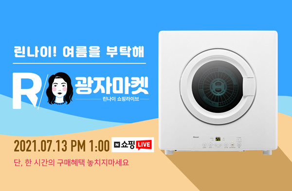 [시민일보 = 이승준] 린나이가 오는 13일 오후 1시 네이버 쇼핑라이브 광자마켓에서 장마철 눅눅한 집안의 습기를 해소할 빨래건조기 해밀 특집 방송을 진행한다고 12일 밝혔다.