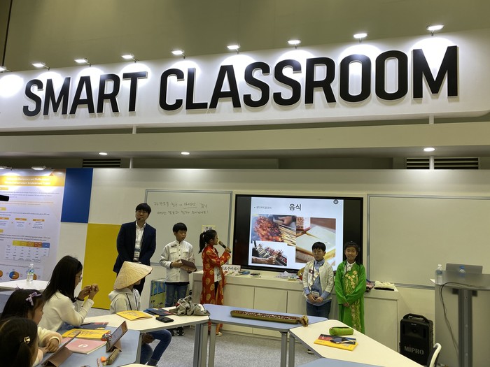 이날 오동주 교사와 4학년 학생 8명(정은재, 강동훈, 양세림, 박기찬, 여우현, 정시원, 박시현, 박규린) 등이 ‘한-아세안 공공행정 혁신 전시회에 설치된 미래교실에서 공개수업을 펼쳤다.