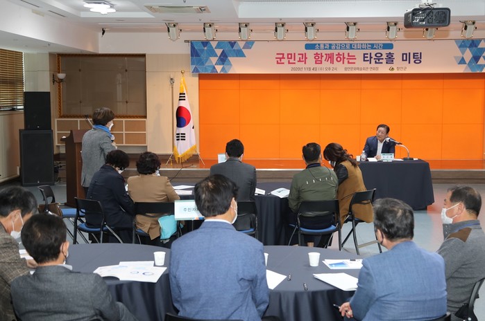 코로나19 방지를 위해 최소한의 인원만 참여한 이번 타운홀 미팅은 군민들의 목소리를 현장에서 직접 듣고 이를 군정에 적극 반영하고자 마련된 것으로 진행방식은 먼저 참석자들에게 군정내용과 추진사항 등을 설명하고, 이에 대해 군민이 묻고 군수가 답하는 방식으로 진행됐다.