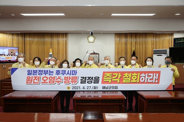 | ▲ 해남군의회 의원 일동, 후쿠시마 원전 오염수 방류 결정 철회 촉구 / 사진=해남군의회 제공 |