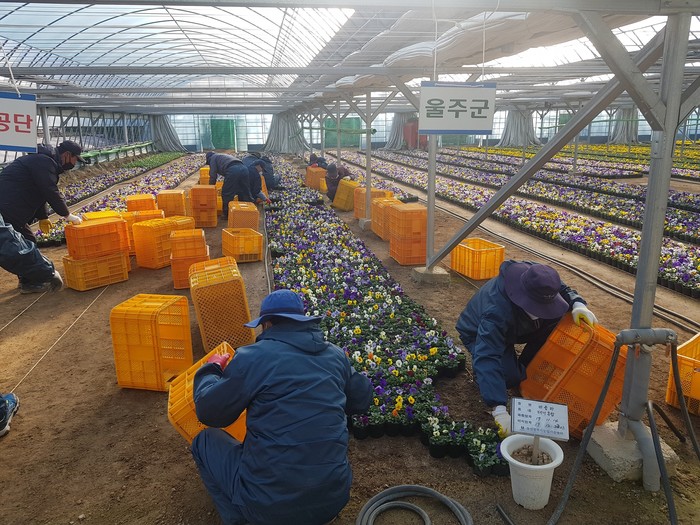 울주군이 봄을 맞아 가로변 화분에 대한 꽃심기 작업을 추진하고 있다.