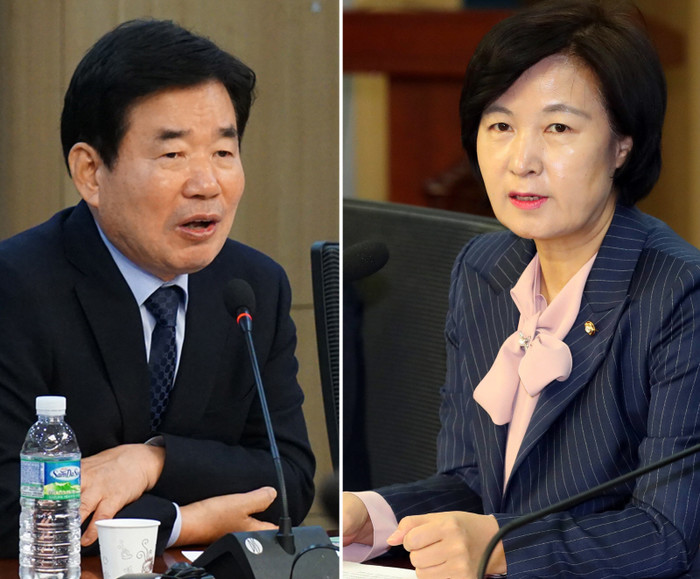 민주당 관계자는 “문 대통령이 김 의원을 총리후보로 낙점한 것은 후반기 국정 운영의 역점을 ‘경제 살리기’에 두겠다는 뜻이고, 당대표급인 추 의원을 법무장관 후보로 확정한 것은 무게감을 높여 검찰개혁에 힘을 싣겠다는 문 대통령의 구상”이라고 말했다.