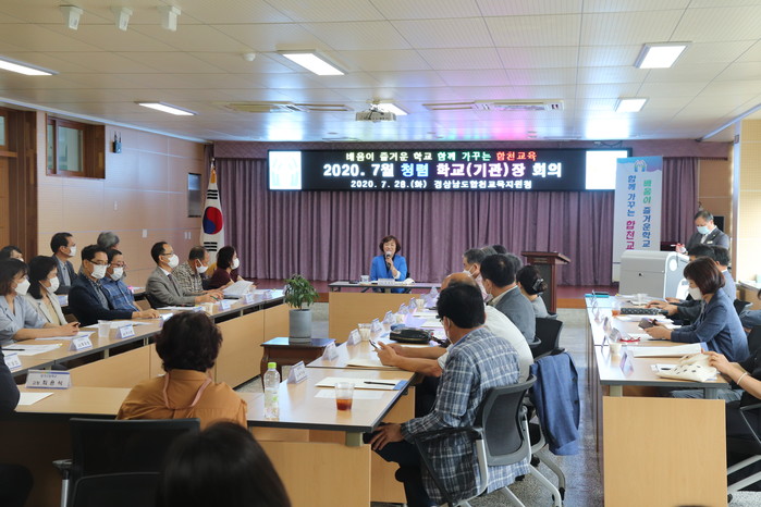 경상남도 합천교육지원청(교육장 김경미)은 7월 28일 오전 3층 대회의실에서 관내 유.초.중.고 학교(원)장 및 직속기관장을 대상으로 코로나19 상황, 2020년 7월 청렴 학교(기관)장 회의를 개최하였다.