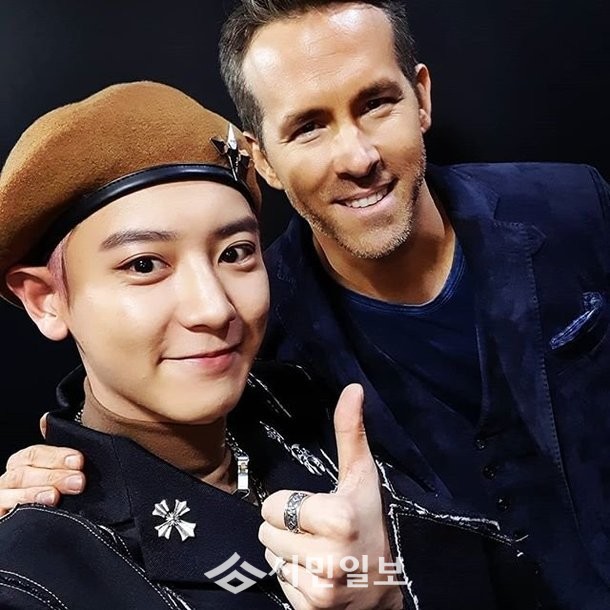 공개된 사진 속 찬열은 베레모를 쓰고 라이언 레이놀즈와 함께 다정한 모습을 남겨 시선을 사로잡았다.