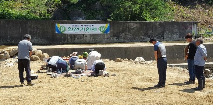 산청군이 노후 소교량 재가설에 나선 가운데 안전기원제를 열고 안전사고 예방을 다짐했다.