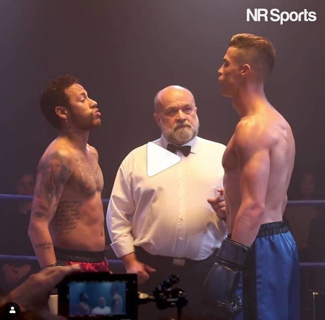 최근 NR 스포츠 인스타그램은 호날두와 네이마르가 복싱대결을 펼치는 짧은 영상을 공개했다. 복싱 트렁크를 입은 두 사람은 글러브와 마우스피스를 낀채 서로를 응시한다. 네이마르는 화려한 스텝을 밟으면서 상대를 자극한다. 호날두는 가드를 올린채 기회를 엿본다.
