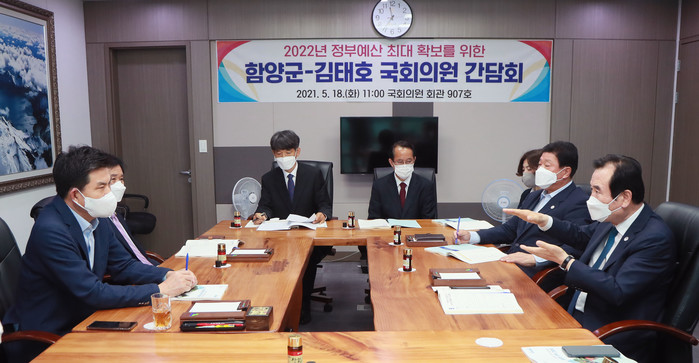 함양군은 18일 지역구 의원인 김태호 의원과 정책간담회를 가지고 각종 현안사업추진과 2022년 국비확보를 위한 지원을 건의했다.