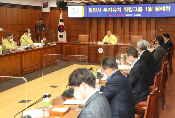 밀양시는 지난 20일 밀양시청 소회의실에서 박일호 밀양시장 주재로 밀양시, 토지주택공사 경남지역본부, 한국산업단지공단 경남지역본부, 경남테크노파크가 참석한 『밀양시 투자유치 워킹그룹 전략회의』를 개최했다고 밝혔다.