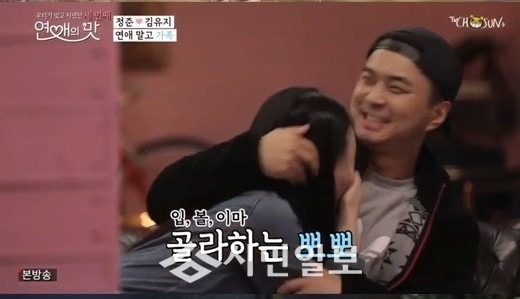 이를 본 정준은 "우리 뽀뽀를 많이 했다"고 말해 웃음을 자아냈다. 김유지는 옆에서 쑥스러운 듯 미소를 지어 보였다.