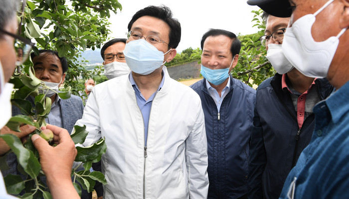 거창군은 지난 2일 농림 축산 식품부 이재욱 차관이 사과 농가를 방문해 현장 저온피해 상황을 점검하고 애로사항을 청취했다고 밝혔다.