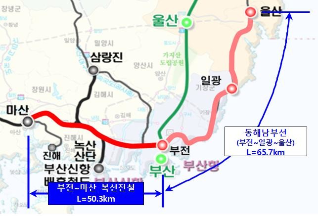 사업이 완료되면 기존 경전선에서 경부선을 우회하는 창원~삼랑진~양산~부산간(87㎞)을 창원~김해~부산(50.3㎞)으로 직접 연결하여 37㎞가 단축되고 운행시간도 기존 1시간 33분에서 38분으로 55분이 짧아진다.
