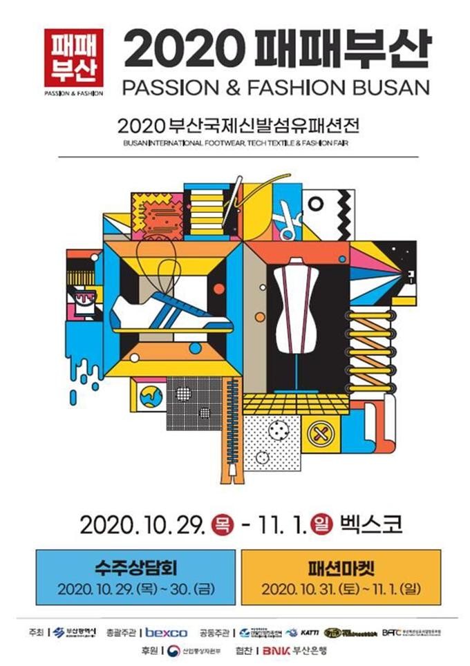 부산시(시장 권한대행 변성완)는 국내 유일의 국제신발ㆍ섬유ㆍ패션복합전시회인 ‘2020 패패부산(Passion&Fashion BUSAN, 이하 패패부산)’을 10월 29일부터 11월 1일까지 벡스코에서 개최한다고 밝혔다.