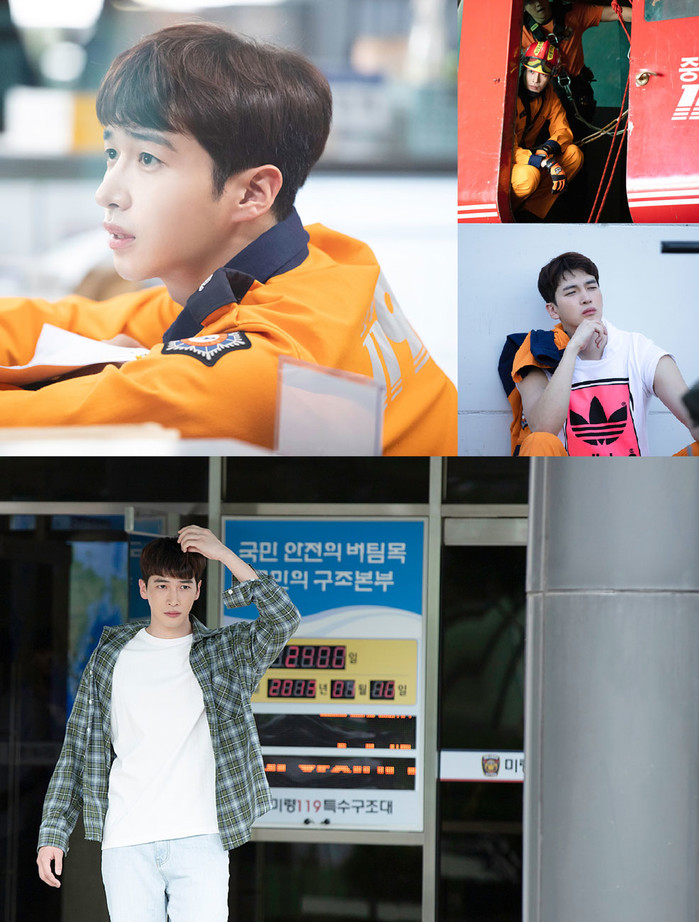 189cm의 우월한 기럭지와 모델출신다운 스타일리시함을 보여주고 있는 김은수는 부산 남자다운 특유의 말투로 막내대원 국순태 대원 역을 소화하며 극중 양대원과의 찰떡궁합 깨알개그를 선보이고 있다.