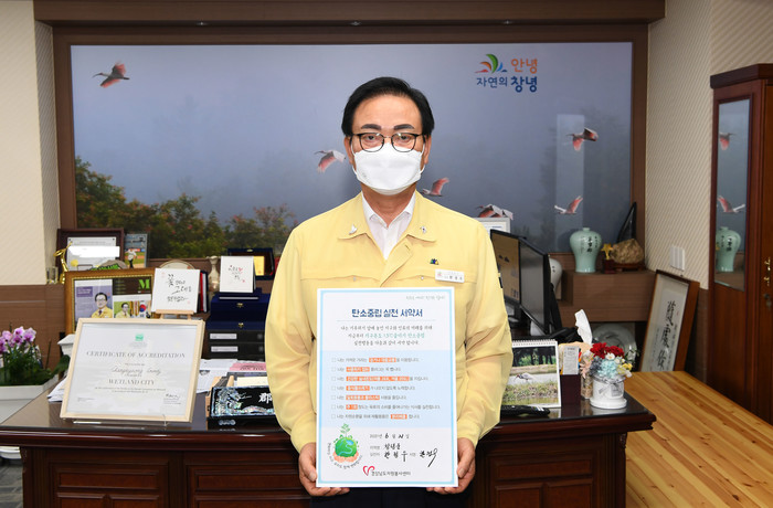 창녕군(군수 한정우)은 지난 21일 기후위기대응을 위한 ‘탄소중립실천서약’에 동참했다.