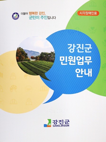 ‘시각장애인을 위한 점자 민원업무안내서’는 ▲강진군 기본 현황 및 소개 ▲읍‧면사무소 전화번호 안내 ▲주요 민원 서비스 안내 및 제증명 수수료 ▲장애인복지사업 안내 등 생활에 필요한 민원정보로 구성했다.