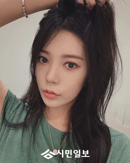 공개된 사진 속 리지는 초록색 반팔티셔츠를 입고 검은 머리를 늘어뜨리고 포즈를 취하고 있다.