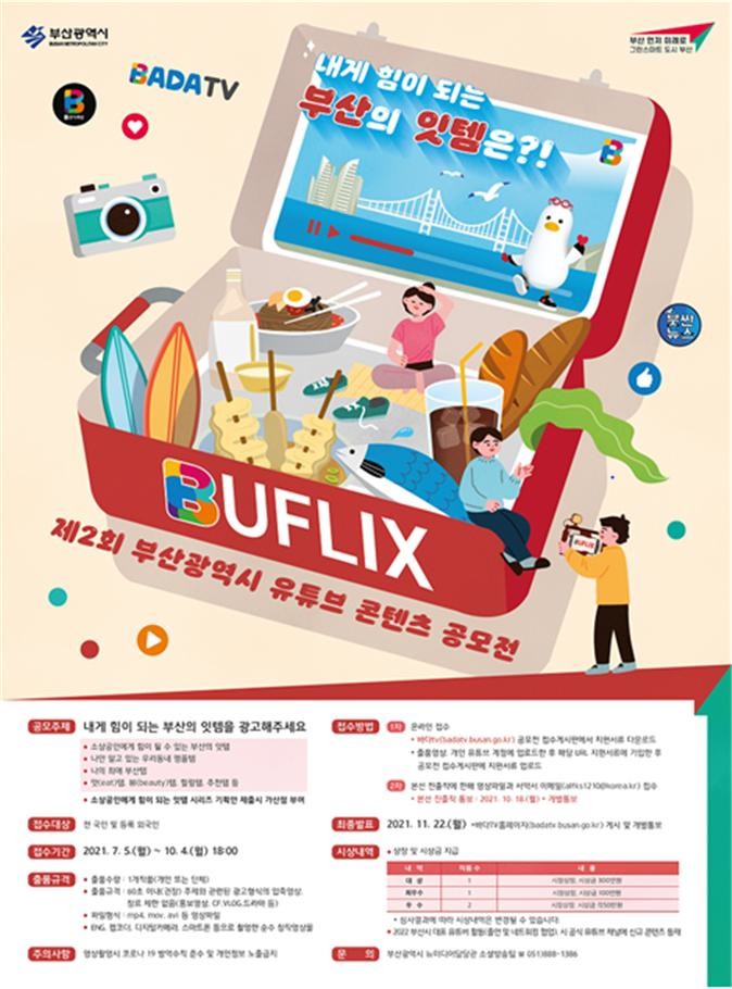 부산시(시장 박형준)가 내일(5일)부터 오는 10월 4일까지 「제2회 부산광역시 유튜브 콘텐츠 공모전」을 개최한다고 밝혔다.