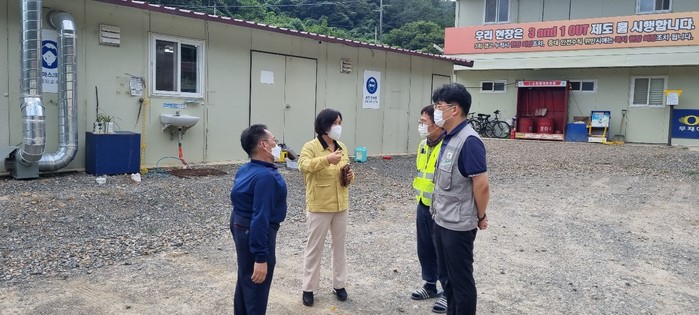 전국적으로 연일 코로나19 확진자 수가 1천명을 넘어서고 경남의 일일 확진사 수 또한 100명을 오르내리고 있는 상황에서 합천군 또한 여름 휴가철을 맞아 가족모임과 고향방문으로 인한 확진사례가 발생하고 있어 이에 합천 부군수는 직접 관내 건설현장을 방문해 코로나19 감염 예방을 위한 방역수칙 및 이행 여부에 대한 현장점검을 실시했다.