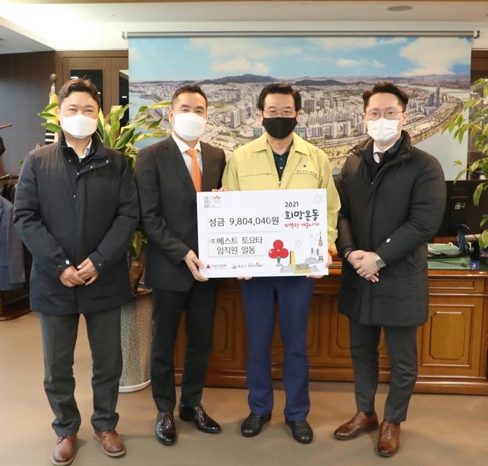 한강로동에 위치한 수입차 판매기업 베스트 토요타도 지난 29일 임직원들이 모은 성금 980만원을 구에 기부했다.