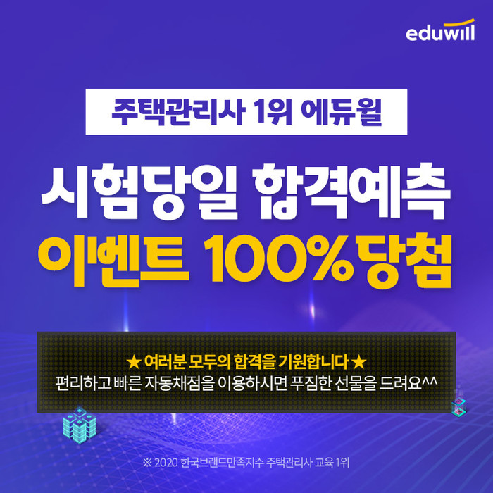 [시민일보 = 여영준 기자] 2020년 제23회 주택관리사 2차 시험이 막 종료됐다. 동시에 종합교육기업 에듀윌은 ‘합격예측 풀서비스’를 오픈했다.