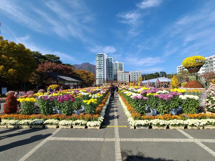 오는 10월 31일부터 15일간 통도사 입구에서 개최되는 양산국화전시는 풍요로운 국화향기와 함께 깊어가는 가을의 천년고찰의 풍광을 즐길 수 있는 행사다.