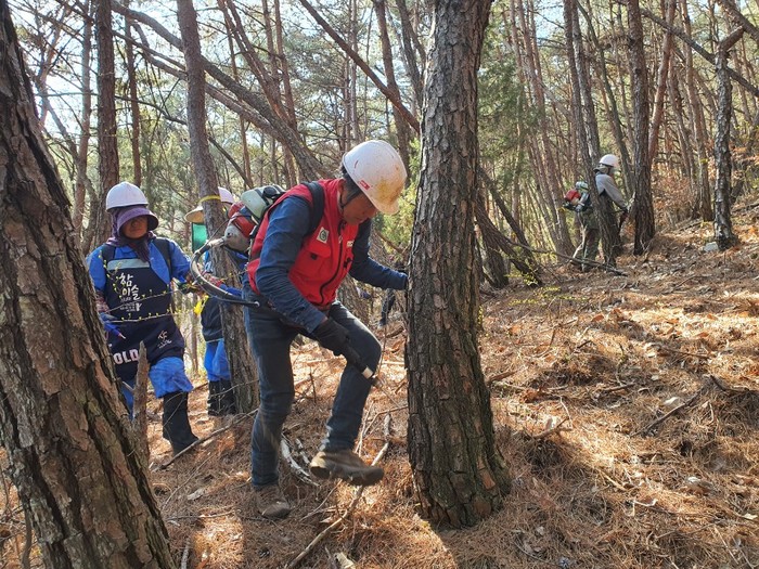 방제는 산림청과 경남도의 방제시책에 따라 방제효과가 가장 뛰어난 파쇄작업으로 이뤄진다.