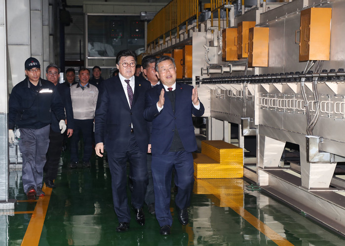 | 삼흥 열처리 생산시설을 둘러보고 있다. |