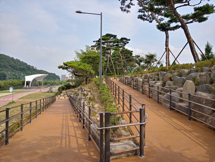 진주시는 남가람공원 내 다소 불편했던 돌계단을 5월말부터 7월초까지 기간에 걸쳐 안전하고 편리한 흙 투수콘크리트 포장 보행로 설치로 재정비하였다.