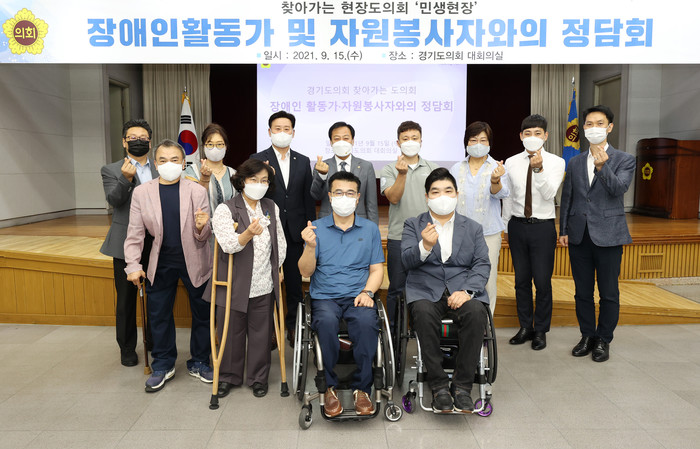 장현국 의장은 “열악한 현실을 개선하기 위해 현장에서 분투하는 여러분이 있기에 우리가 조금이나마 앞으로 나아가고 있다고 생각한다”면서 “경기도의회는 코로나 장기화로 시설 폐쇄 등 커다란 벽에 부딪힌 장애인들에게 실질적 지원책을 제공할 수 있도록 최선을 다하겠다”고 말했다.