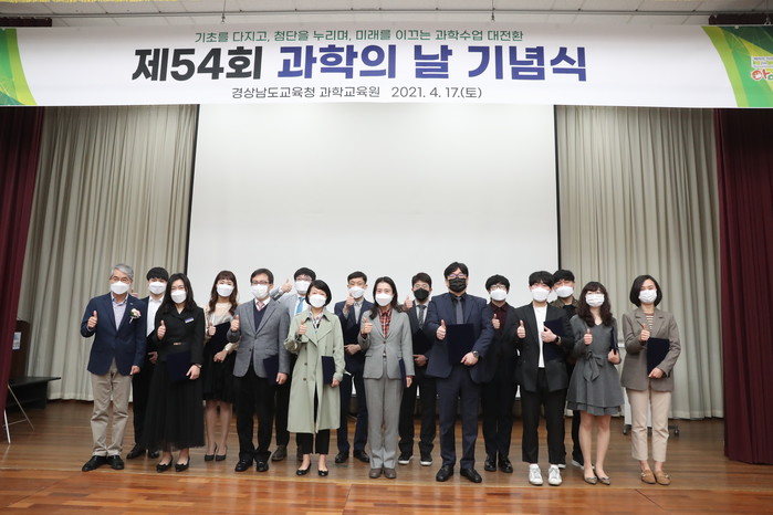 대강당에서 개최된 기념식에서 박종훈 교육감은 도내 우수과학교사 16명에게 표창장을 수여하였다.