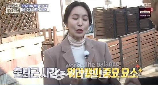 박지윤은 "면이면 직장까지 거리는 어떻게 되냐"며 "출퇴근 시간이 정말 워라밸을 결정하는 중요한 요소다"고 말했다.