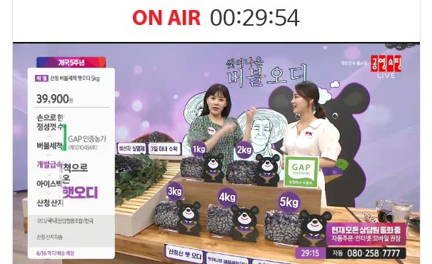 산청군 양잠농업협동조합(대표 강용수)이 보관과 섭취가 편하게 만든 ‘씻어나온 버블오디’가 공영홈쇼핑에서 50분만에 8977만원의 판매고를 올렸다.