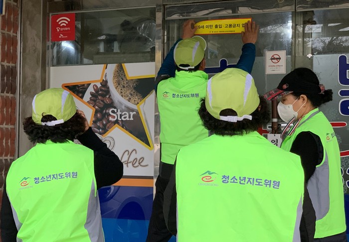 | ▲ 음식점, 슈퍼 등을 방문해 청소년 유해환경 개선 캠페인을 실시하고 있다. |