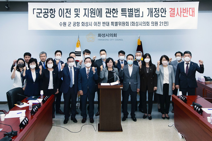 또 화성시의회도 “화성시의 일방적인 희생을 강요하는 개악 법안을 84만 화성시민을 대표해 반대하며, 군공항 이전 시도 저지를 위해 모든 역량을 총동원해 끝까지 투쟁할 것”이라고 밝혔다.