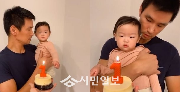 영상 속에는 숫자 1 모양의 초가 꽂혀 있는 작은 케이크를 리아 앞에 두고 생일 축하 노래를 부르는 부부의 모습이 담겨 훈훈함을 자아냈다.