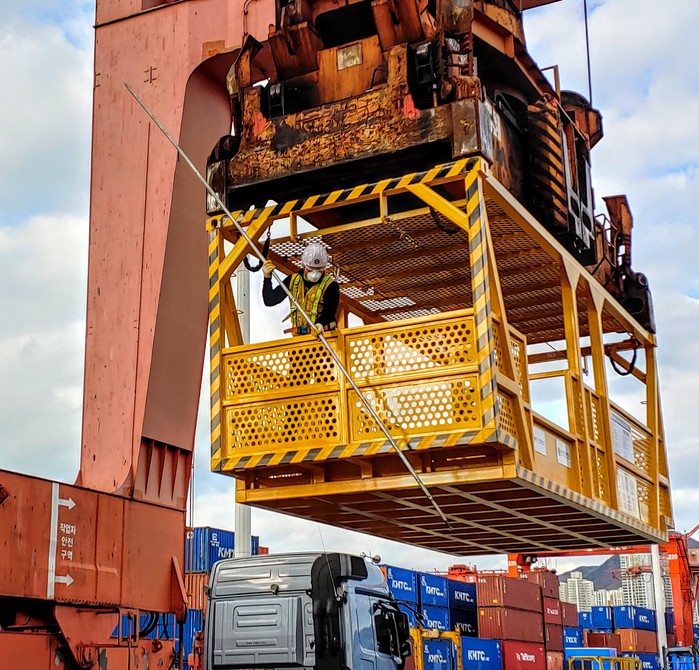 이에, 부산항만공사는 북항에 입항하는 선박의 고소작업에 가장 적합한 맞춤형 20ft 작업대 6기를 제작.지원함으로써 근로자의 위험요인을 제거하여 안전한 작업 환경을 마련하였다.
