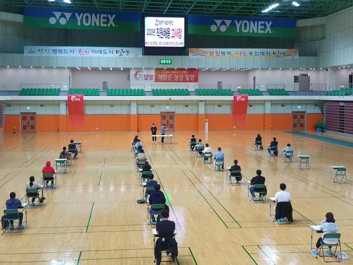 밀양시시설관리공단(이사장 이병희)은 신종 코로나바이러스 감염증(코로나19) 사태로 1차 연기하였던 2020년 직원 채용(필기)시험을 5월 9일 밀양시배드민턴경기장과 밀양스포츠센터에서 진행했다고 전했다.