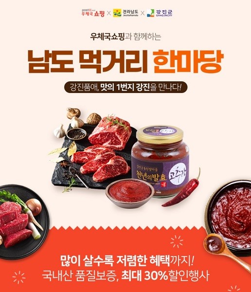 전라남도 온라인 쇼핑몰인 남도장터 제품 중 우체국쇼핑에 입점된 11개 업체, 44개 품목(쌀귀리고추장, 파프리카, 한우, 표고버섯, 김자반, 광어회 등)을 최대 30% 할인된 가격으로 판매한다.