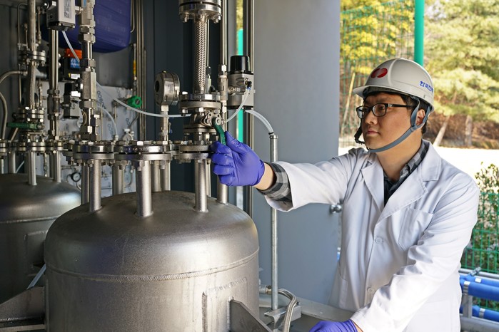 | ▲ 수소저장 액체기술(LOHC) 설비 작동장면.(사진제공=한전) |