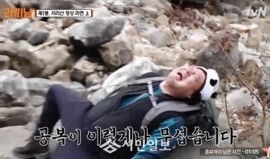이어 그는 "이렇게까지 해서 라면을 먹어야 하냐"고 덧붙였다. 하지만 강호동은 체념한 듯 등반을 시작했고, 절반도 오기 전에 방전된 모습을 보였다.