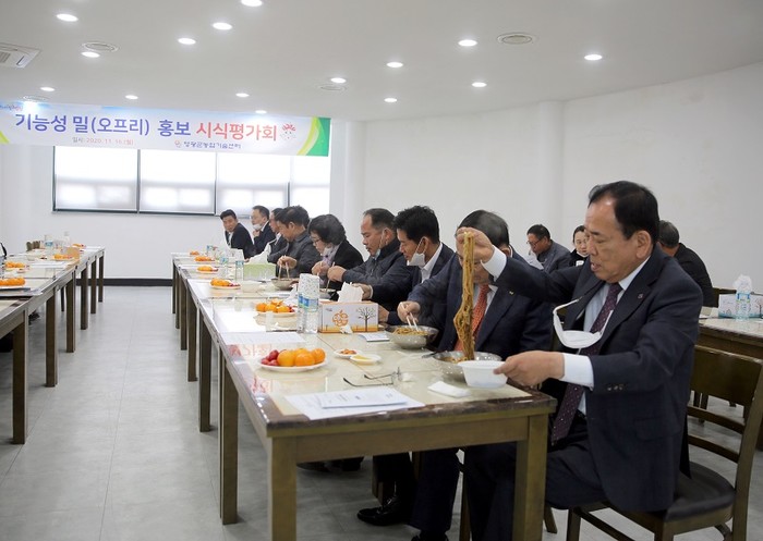 이번 시식‧평가회는 세계 최초 알러지 저감 기능성 오프리 밀을 소개하고, 오프리 밀가루로 만든 짜장면을 직접 맛보며 그에 대한 향, 맛, 식감, 기호도 등을 평가하였다.