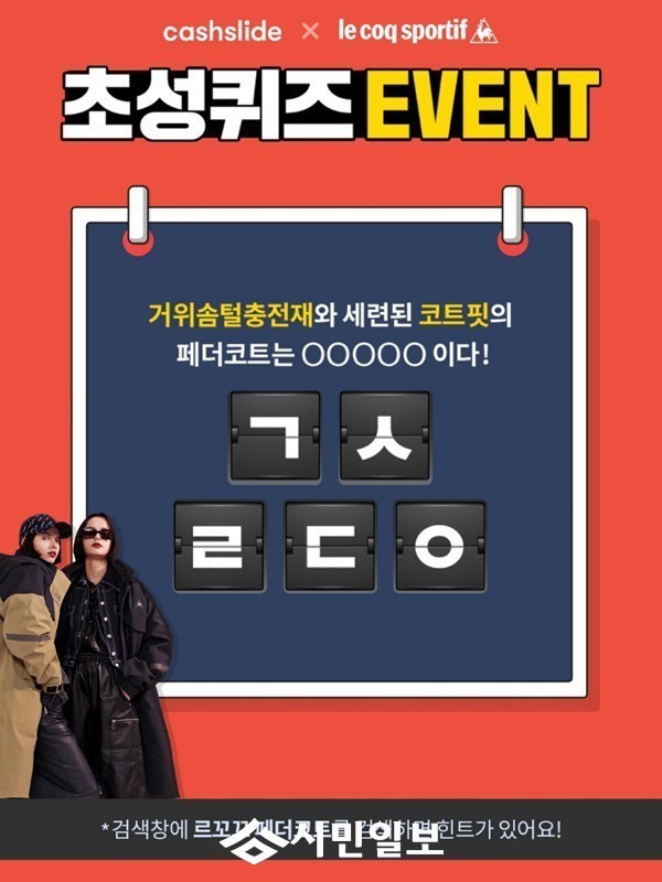 캐시슬라이드에서는 '르꼬끄 페더코트'에 대한 문제를 출제했다.