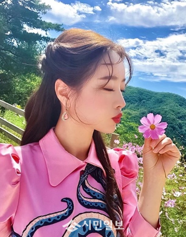 공개된 사진 속 홍수아는 꽃을 들고 입술을 내밀며 사랑스러운 매력을 한껏 발산하며 이목을 사로잡았다.